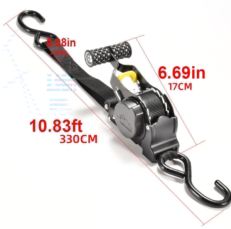 Convenient Handling: Effortlessly organize and transport cargo with our retractable ratchet straps. Our innovative design eliminates tangled straps and simplifies tensioning, ensuring convenient handling and fast recoiling for easy use.