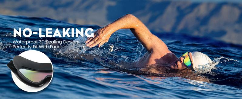【Anti-Fog & UV Protection】Adult Swim Goggles' inner lenses are equipped with the latest anti-fog treatment to let you see clearly underwater without blurring, while the outer surfaces feature UVA/UVB protection to shield your eyes from harmful UV rays and bright lights. Ideal for beginners, swimmers, and professional athletes alike, these goggles are perfect for both indoor and outdoor use.