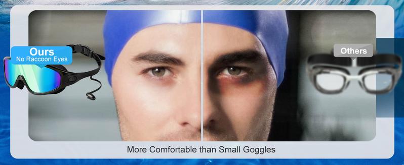 【Ultra Wide Vision】Adult swim goggles with large-frame offer a wider and clearer field of vision. Enjoy 180-degree peripheral vision without any safety concerns or obstacles. The spacious design also provides ample room to protect your eyes and eyelashes from chlorine in the water.![]()