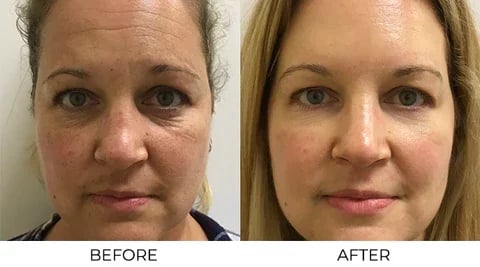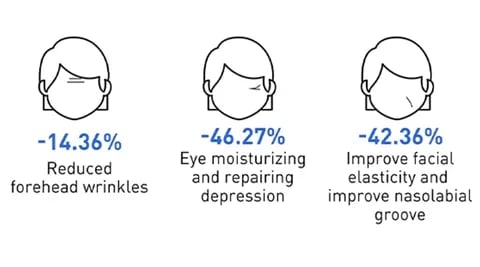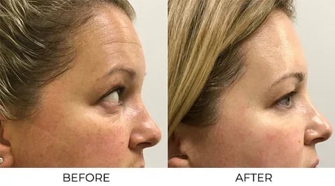 - Fades forehead creases, frown lines, crow's feet, etc.