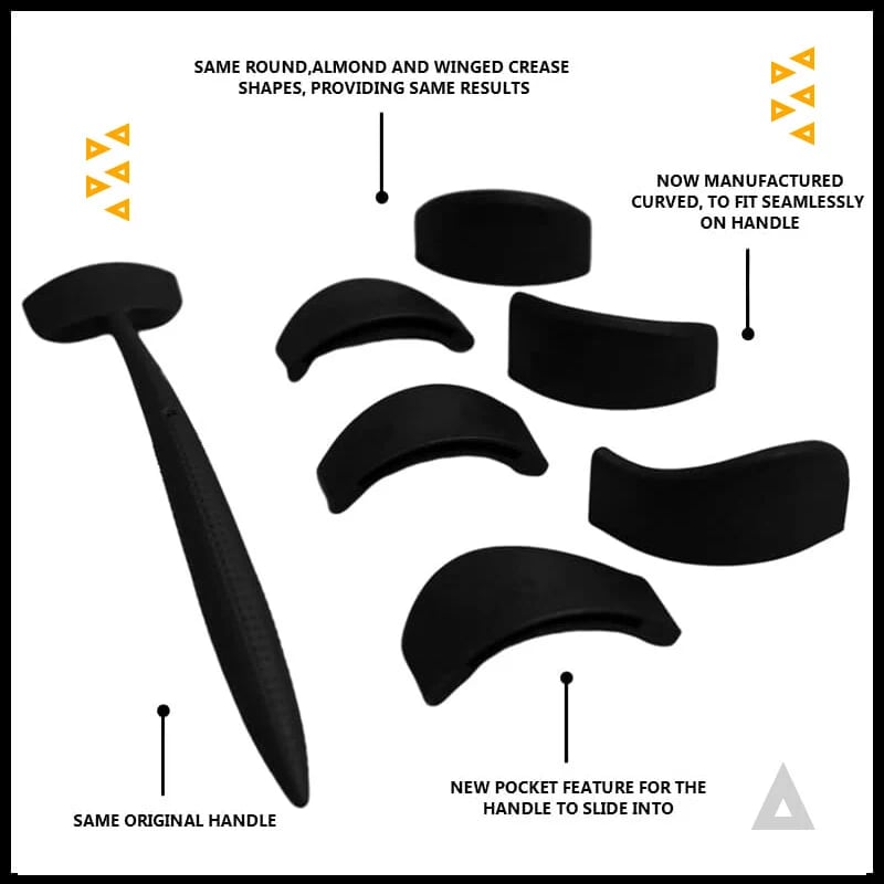 Each Crease Line Kit comes with three sets of custom and reusable silicone crease shapes for every eye shape and eyeshadow style.、