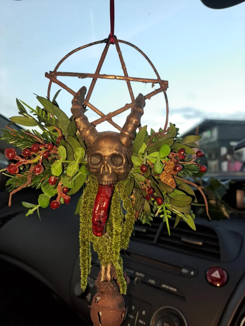 This Floral Skull Krampus Wreath is a spooky gothic Christmas hanging decoration made for those who prefer dark, alternative holiday decor.