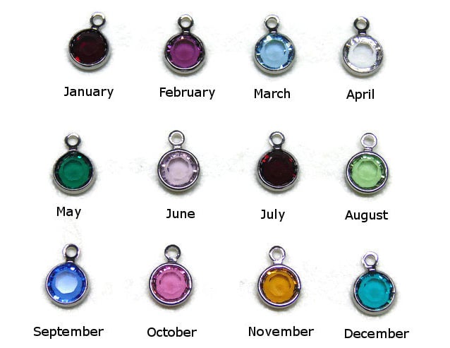 Each keychain is handcrafted with a birthday stone charm and initial.