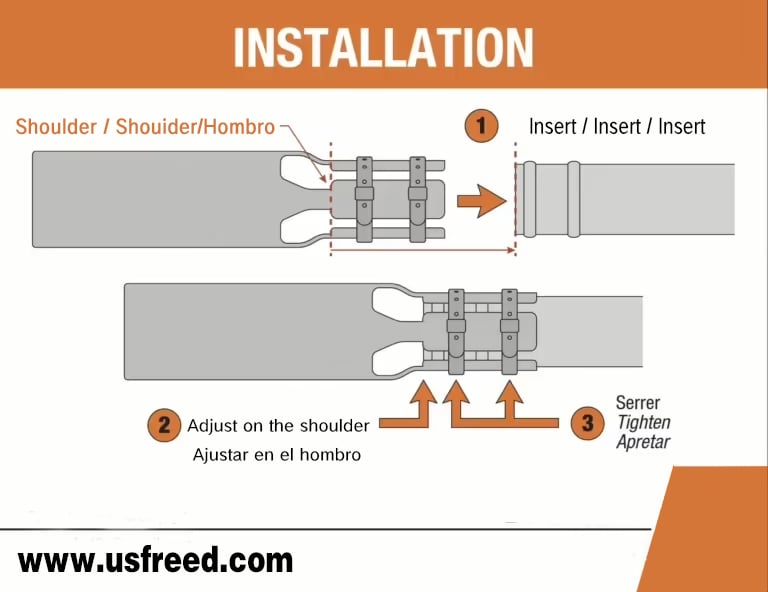 Make sure to fit it over the shoulder as illustrated in point 2. The shoulder is the widened part of the Leaf Blower Air Booster that should fit snugly over your blower nozzle. Ensure the Leaf Blower Air Booster is properly centered and positioned before proceeding.