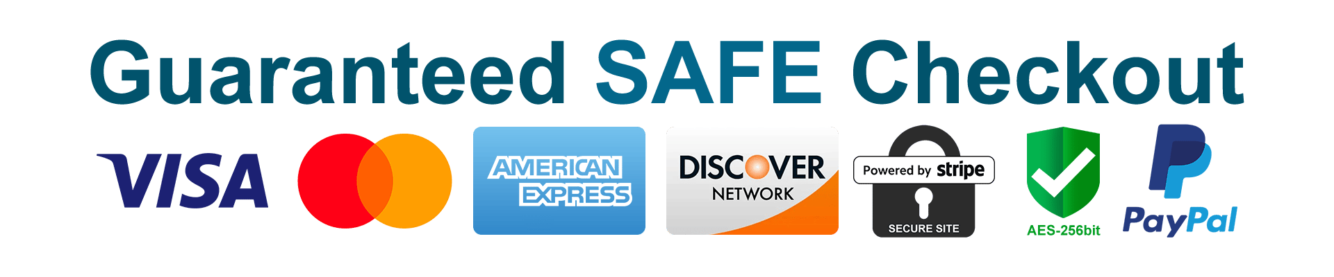 The Checkout Process is Guaranteed to be 100% Safe and Secure with Visa, Mastercard, AMex, Discover, Apple Pay or PayPal.