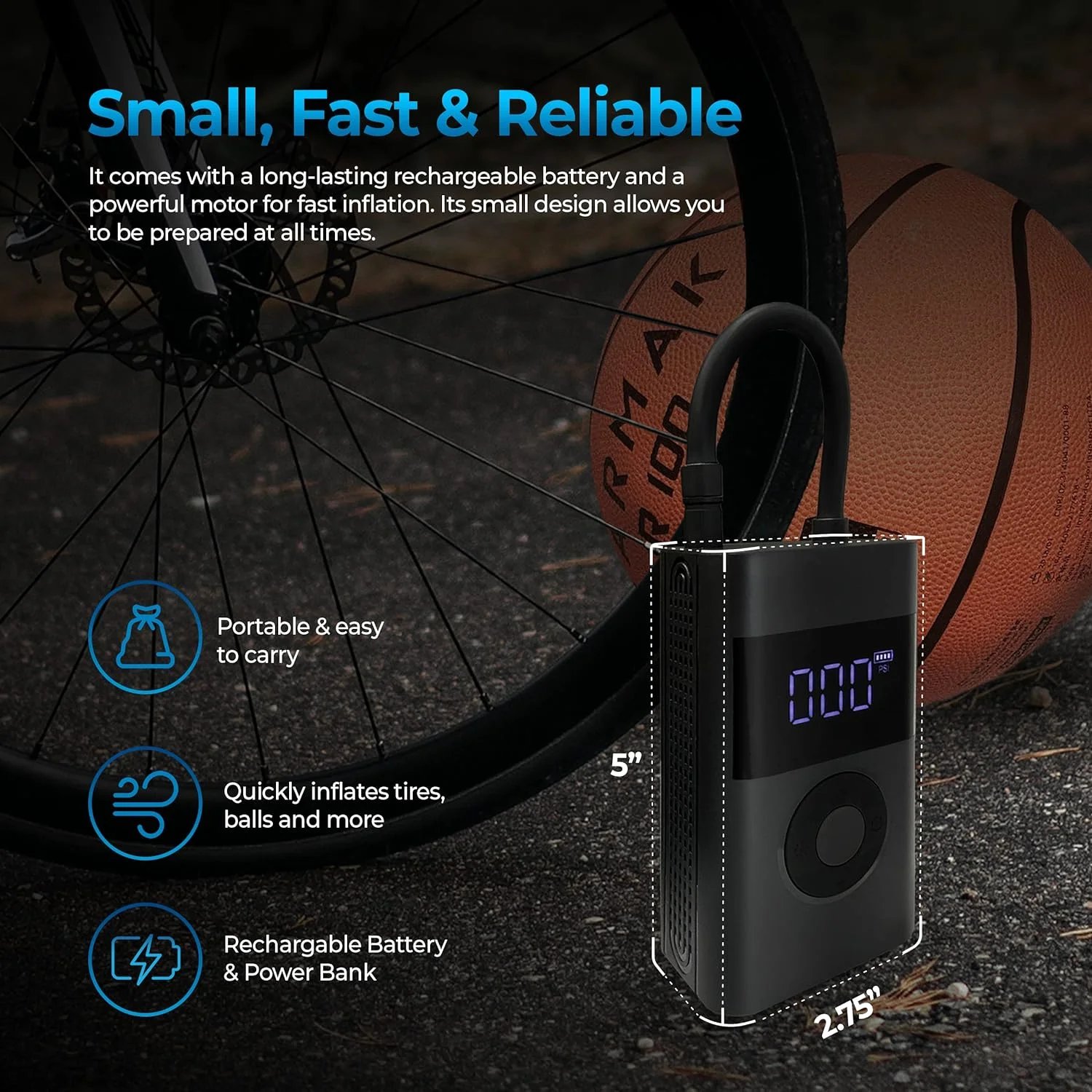 Air Pump with Tire Pressure Gauge : The AutoSky Portable air Compressor features a built-in tire pressure gauge that allows you to monitor the pressure level of your tires and adjust it as needed.