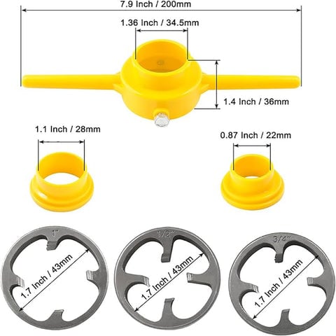 👍【Package Includes】1 x Plastic Pipe Die, 2 x Round Dies, 3 x Thread Dies ( 1/2", 3/4", 1" )