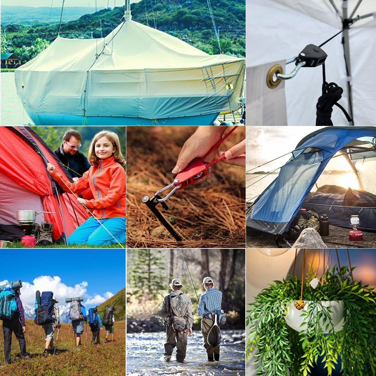 🌳Make Camping Easier and Faster: Only need hook the hammock,tent tarp or tent stakes by the carabiners,then use the pulley to adjust the rope length for you need,reduce the set up time and eliminates time-consuming hitch knots;