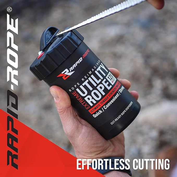 - MULTIPURPOSE AND REUSABLE: For indoor and outdoor use. Rapid Rope is perfect for camping supplies, backpacking gear, emergency kits, tie down rope, the possibilities are endless! The canister is reusable. When you run out of rope, just add a Rapid Rope refill, and you’re good-to-go.