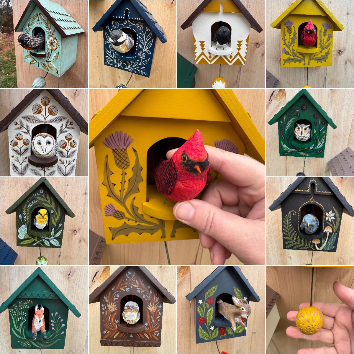 1*Whimsical Kinetic Art Birdhouse Wall Decor
