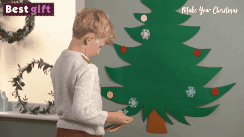 A red string on the top of the DIY felt Christmas tree can be easily hung anywhere around the house, on the wall, door or window,which can let your kids feel all Christmas and new year atmosphere!